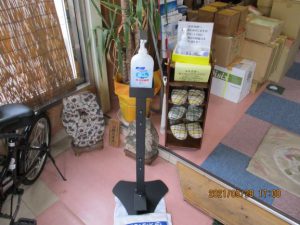 営業室には消毒液と消毒用ウェットティッシュを置いております。