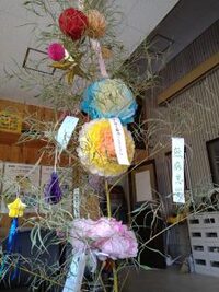 玄関と休憩室に笹を置き、飾り付けしました☆